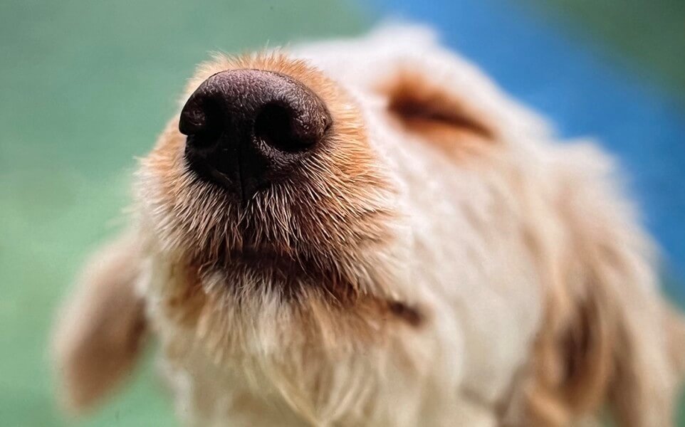 강아지의 후각은 사람보다 굉장히 발달이 되어 있습니다 .강아지는 후각으로 많은 것들을 알아볼 수 있습니다. 첫 번째로는 사람의 상태입니다. 강아지들은 사람이 스트레스를 받는다거나 아픈 것을 냄새를 통해서 알 수 있다고 합니다. 사람이 스트레스를 받거나 긴장을 하게 되면 땀이 나고 호르몬의 냄새도 조금 다르게 난다고 합니다. 또한 사람이 아프면 신진대사에 변화가 생겨 호흡할 때 배출되는 냄새가 다르다고 합니다. 강아지들은 이런 사소한 냄새까지도 모두 캐치할 수 있습니다. 두 번째는 날씨의 변화입니다. 강아지들은 공기의 변화나 기압의 변화를 냄새를 통해 알 수 있다고 합니다. 이 말은 냄새를 통해서 날씨를 알 수 있다는 뜻입니다. 비가 오기 전이나 번개가 치기 전 에너지가 공기를 이온화시키는데 이 과정에서 냄새를 통해 먼저 감지할 수 있다고 합니다. 세 번째 탐지 능력입니다. 뉴스에 보면 마약탐지견이나 구조할 때 구조자 탐지견을 많이 보셨을 겁니다. 강아지들은 이뿐만 아니라 특정금속을 감지할 수 있어서 폭팔물이나 무기 탐지견으로도 활동하기도 합니다. 강아지의 후각 능력은 정말 대단하다고 할 수 있는데 보통 사람은 시각, 후각, 청각 중 시각에 80%를 의존해 살아가게 되는데 강아지는 40% 이상을 후각에 의존하여 살아간다고 합니다. 그러므로 강아지에게 있어서 후각은 매우 중요하고 대단한 감각입니다. 이런 중요한 후각을 계속 유지하려면 항상 코를 촉촉하게 해 주시는 게 좋습니다. 강아지들은 코가 마르면 컨디션이 안 좋다는 의미라는 것도 기억하시기 바랍니다.