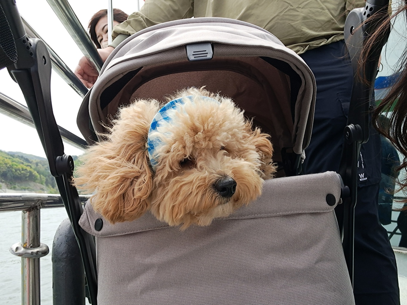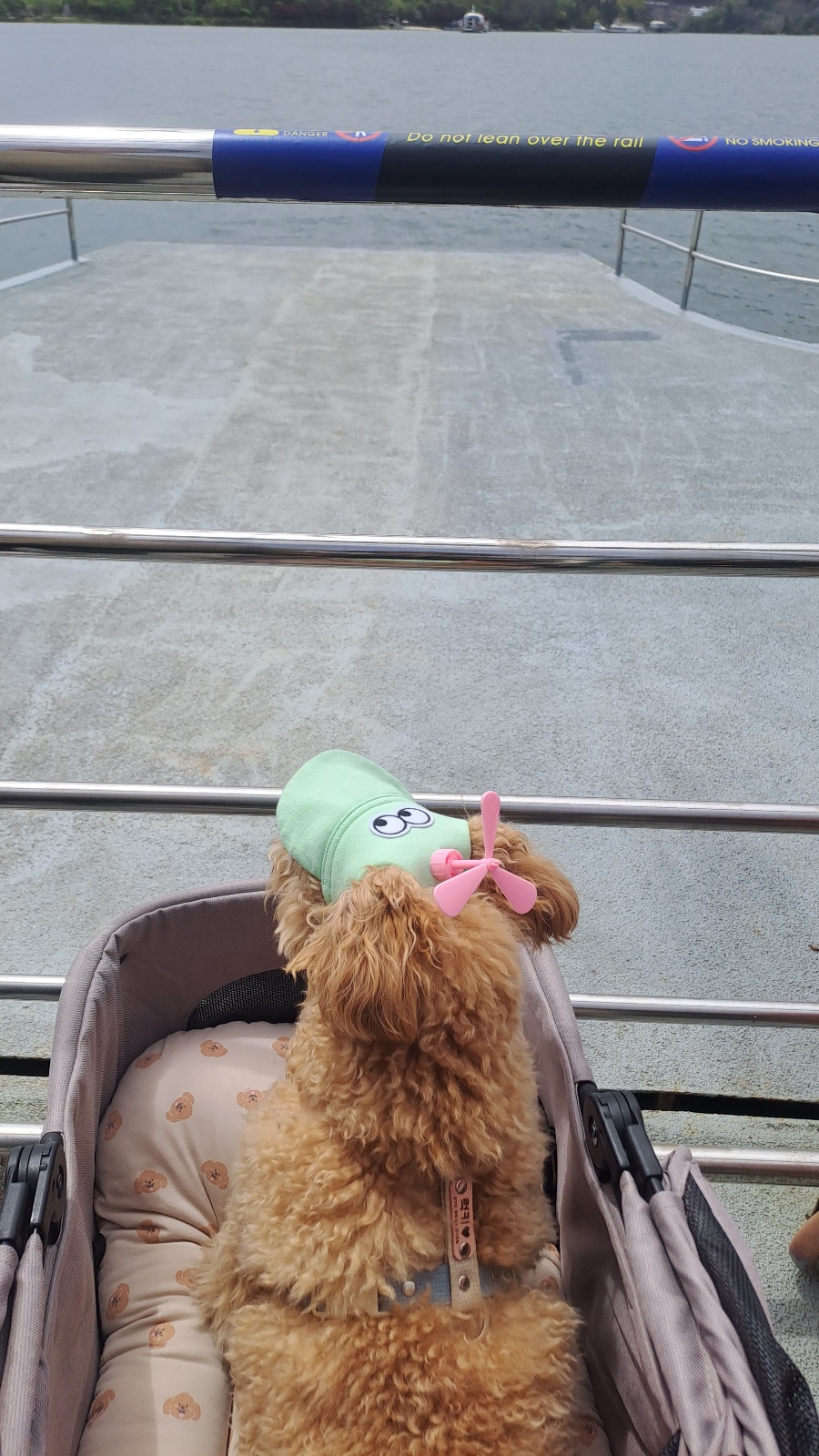 남이섬은 20kg 이내의 강아지 동반이 가능한 곳입니다. 하지만 한 달에 한번 마지막 주말에는 무게에 상관없이 가능하다고 하니 참고하시면 좋겠습니다. 11시 조금 넘어서 도착했는데 벌써 주차장이 만차라 조금 멀리 차를 주차하고 사람이 많아 유모차로 이동하였습니다. 사람이 많을 때는 보행하는 사람들도 강아지 때문에 불편할 수 있고 저희 강아지는 소형견이라 사람들한테 치이거나 밟힐 수도 있기 때문에 사람 많은 곳을 갈 때는 항상 유모차를 가지고 다니면서 이용하는 편입니다. 하지만 이번엔 유모차를 새로 구매해서 자랑하고 싶은 마음도 조금은 있었습니다. 드디어 배를 타고 남이섬으로 들어갔습니다. 배안에 사람도 굉장히 많아서 저희는 먼저 내리기 위해 배 가장 앞에서 타고 이동을 했습니다. 그래야 유모차 때문에 다른 사람이 불편하지도 않고 사람이 너무 많으면 강아지도 불안해하기 때문에 가장 앞에서 기다리다가 먼저 나가는 것을 추천드립니다.
